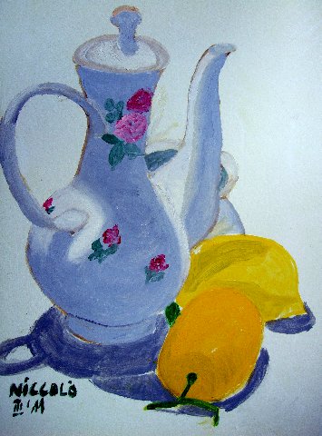 natura morta: bricco fiorato del caffè